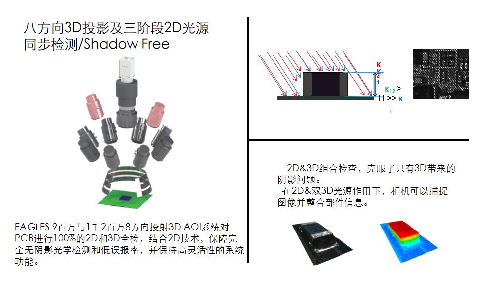 那3D AOI具體檢測那些問題呢?主要檢測元器件的破損、虛焊、側立、翻件、錯件、空悍、溢膠、偏移、少錫、短路、汙染、缺件、歪斜、立碑、浮高、極度性、錫洞、引腳未出等各種不良品。