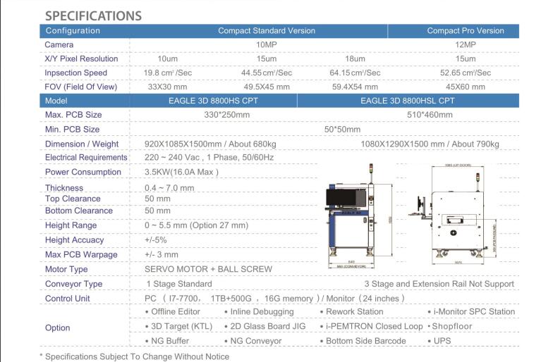 3D自動光學檢測儀利用LED燈光(紅、藍、白)打光, 高速CCD相機運動並拍照取像;通過光學反射和摩爾條紋原理,結合相位移動技術和2D+3D 的成像技術,檢測電路板上元器件在SMT過程中的品質問題。 高速度檢測和測量技術 EAGLES 9百萬 8投射 3D AOI係統對PCB進行100%的2D和 3D全檢。結合2D技術,保障完全無陰影光學檢測和低誤報率, 並保持高度靈活性的係統功能。